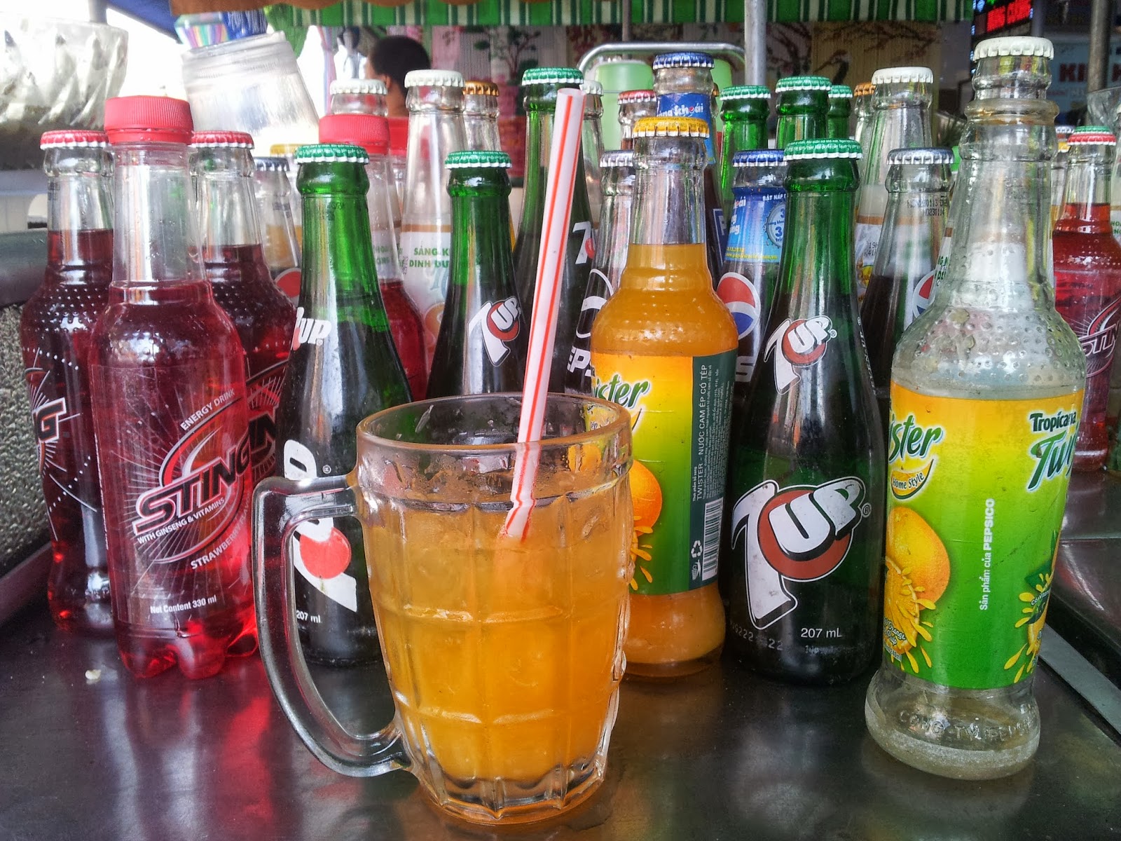 假如你選擇了瓶裝汽水後坐下來,老闆便給你一杯冰塊。把汽水倒進冰塊後,一瞬間便變成冰涼的飲品。立即喝上一口,冰涼的感覺從口腔蔓延至胃部,再喝一口便浸透全身,喝上一瓶便暑氣全消了。汽水喝完後,往往會剩下半杯冰塊。當你為這些冰塊而感到可惜之際,你或會發現枱上還有一壺越南茶。把微溫的茶倒進冰塊裏再次飲用,便能加倍補充身體所失去的水份,還可以補充排汗時流失的礦物質。越南茶是免費的,這也算是貼心的增值服務。當杯裏的冰塊完全消耗後,便完成了整個飲用過程。此刻,你得到了最便宜的滿足。