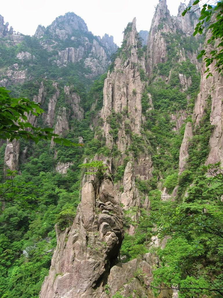 黃山的景區都是輪流關閉保養,當日蓮花峰正被關閉保養,只能從山腰經過,不能登上山頂。上天都峰的路很陡, 為了安全, 我一手抓緊路旁的繩索, 一步一步的往上爬, 有時也要雙手雙腳並用. 下山的路比上山的路更陡,需要更加小心。