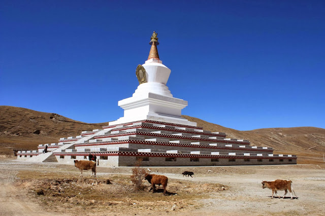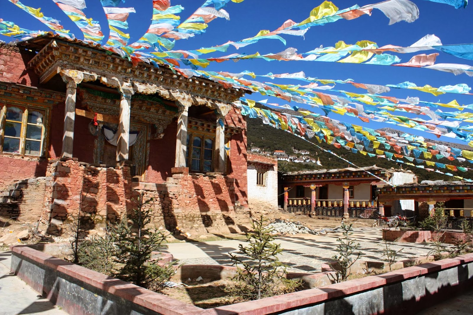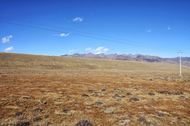 跟所有藏區一樣,稻城的山上都有紅色頂的寺廟,金頂的白塔,還有掛著五彩十色的經幡。高原地方並無空氣污染,遠處山上所有微細的景物,都可看見。